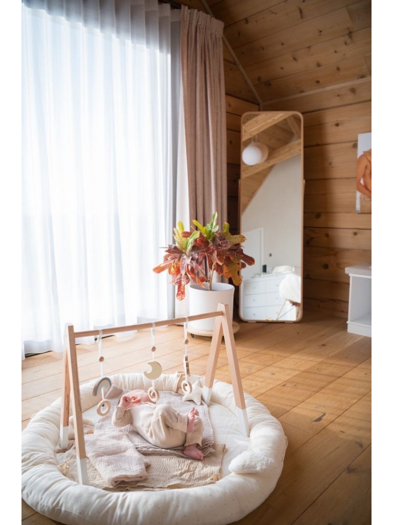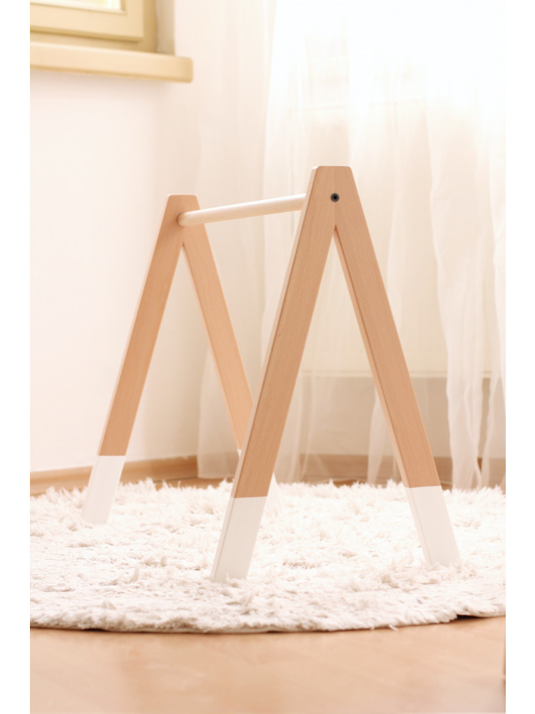 Hrazdička je jednou z prvních hraček, na které miminko začíná reagovat. Jelikož děťátko ze začátku samotnou hračku v ruce neudrží, je zavěšení hraček nad ním ideálním řešením. Na hrazdičku můžete zavěsit jakékoliv hračky a v případě potřeby je jednoduše obměnit. A až Vaše děťátko z hrazdičky vyroste, dá se využít jako stylový štendr na dětské oblečení.