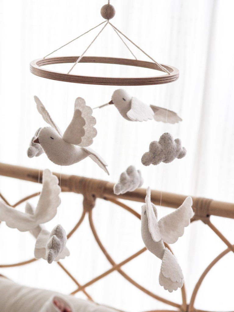 Ručně vyrobený kolotoč nad dětskou postýlku