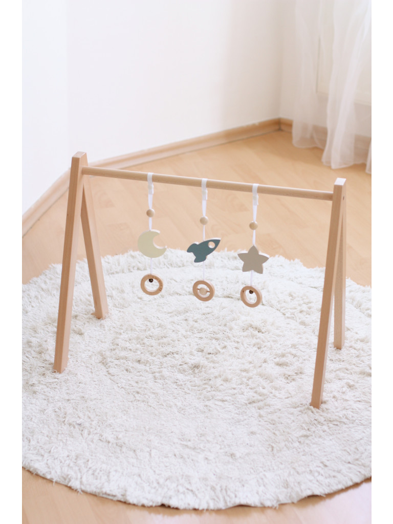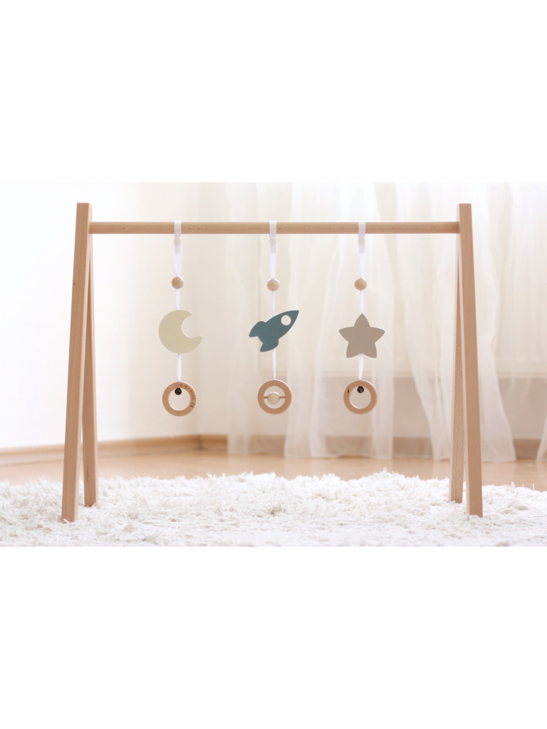 Hrazdička je jednou z prvních hraček, na které miminko začíná reagovat. Jelikož děťátko ze začátku samotnou hračku v ruce neudrží, je zavěšení hraček nad ním ideálním řešením. A až Vaše děťátko z hrazdičky vyroste, dá se využít jako stylový štendr na dětské oblečení.